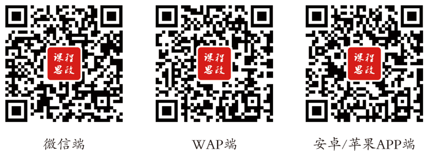 ◆移动端使用方法:通过手机扫描下方二维码,关注微信公众号使用“课程思政”微信端,或下载APP使用。请注意:使用移动端时,须先在校园网IP范围内注册账户(该账户将自动升级为不限IP的移动端账户),并以该账户登录移动端。