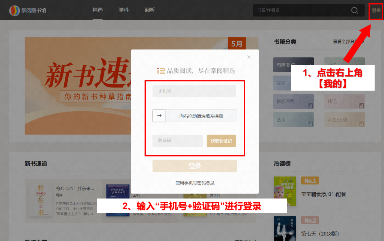 点击右上角【登录】按钮,输入“手机号+验证码”后点击登录